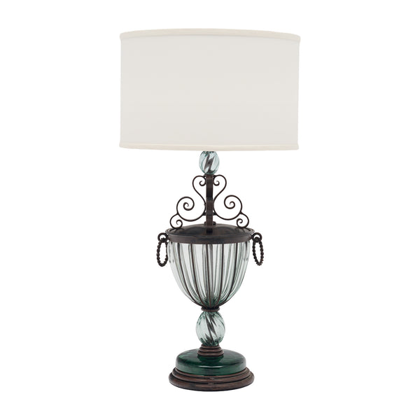 Art Nouveau Style Table Lamp, French, Glass, Iron, Vintage 1930s