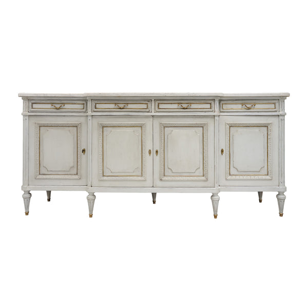 Painted Louis XVI Buffet, French, Carrara Marble, Antique 1920s