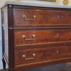 Chest of drawers from the Louis XVI period in France. This piece is made of solid wood construction, primarily mahogany. The chest has been finished with a French polish of museum quality with a high shine luster. There are three dovetailed drawers all featuring brass trim and brass pulls. The chest is topped with a Carrara marble top slab. It is in very nice antique condition with only minor surface wear consistent with age and use. The photos accurately depict the condition.