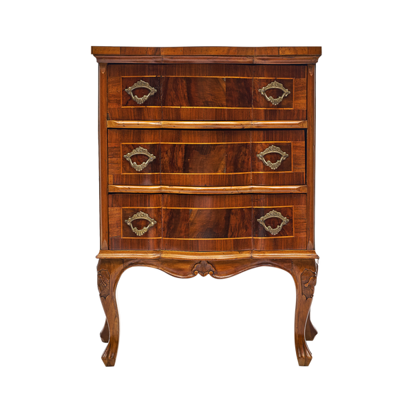 Chest from the Louis XVI period in France made of solid wood construction, primarily mahogany. This piece has been finished with a lustrous French polish of museum quality. There are three dovetailed drawers all embellished with brass trim. Each drawer also features two brass pulls. The four legs are tapered and capped with brass feet. The chest is topped with an intact, original gray Sainte Anne marble top. This piece is in very nice antique condition with only minor surface wear consistent with age and use. The photos accurately depict the condition.