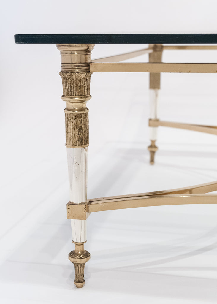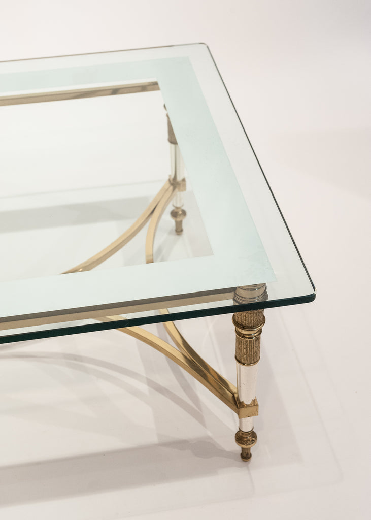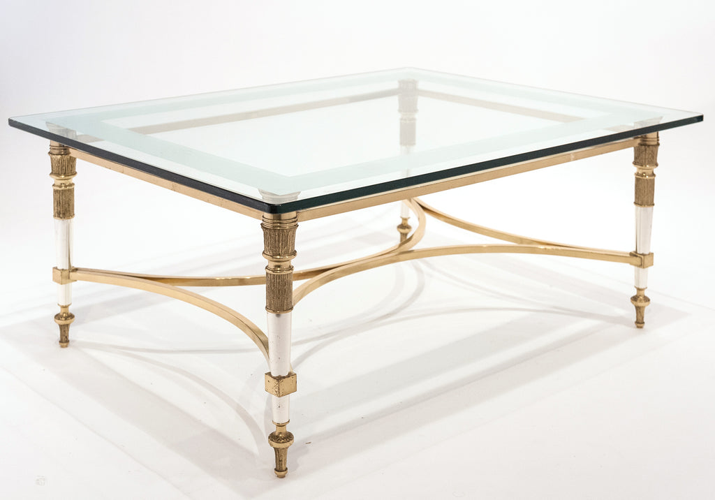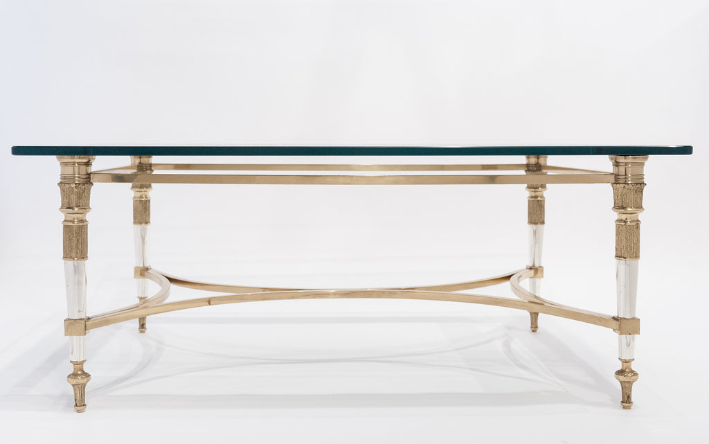 Gorgeous Maison Raphael gilt bronze and chrome coffee table. Beveled glass slab top with mirrored edge (original and in perfect condition). We admired the flawless design and the finely cast bronze details on this rare and irresistible piece. Great height.