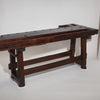 Workbench from the French alps used in the making of wooden skis. This piece is made of solid wood, mainly chestnut and fir, that has been waxed and showcases a striking patina. It includes the original forged iron vices, as well as a basin for measuring and molding the skis. A beautiful and amazing feat of woodworking. This piece is in very nice antique condition with only wear consistent with age and use. The photos accurately depict the condition.