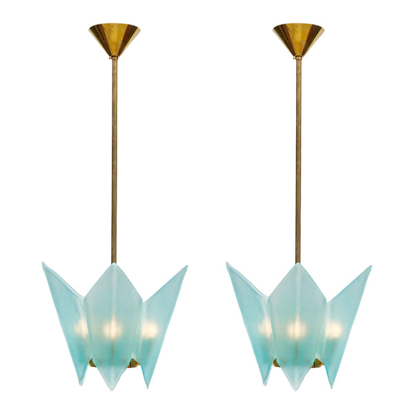 Pair Of Murano Glass Blue Pendants