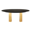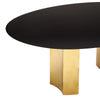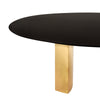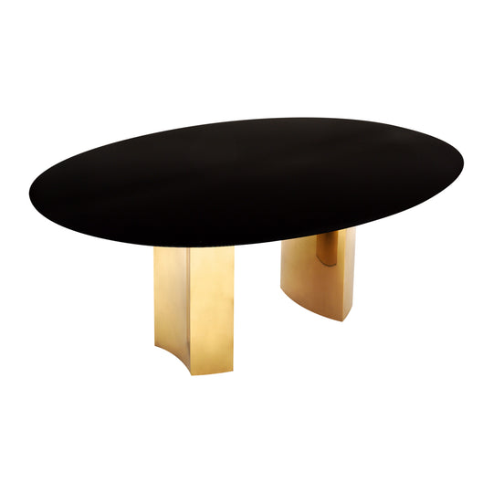 Dining table from Italy in the Modernist style. This piece features a brass base with two brass legs holding up a black Corian top. This sleek piece is perfect for functionality and aesthetic appeal. It is in very nice condition – the photos accurately depict the condition.
