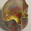 Hand-blown glass vase by renowned glass artist Dale Chihuly. This piece has lovely red and green tones with a neon yellow rim. We love the organic, asymmetrical shape. This piece is in very nice condition – the photos accurately depict the condition.