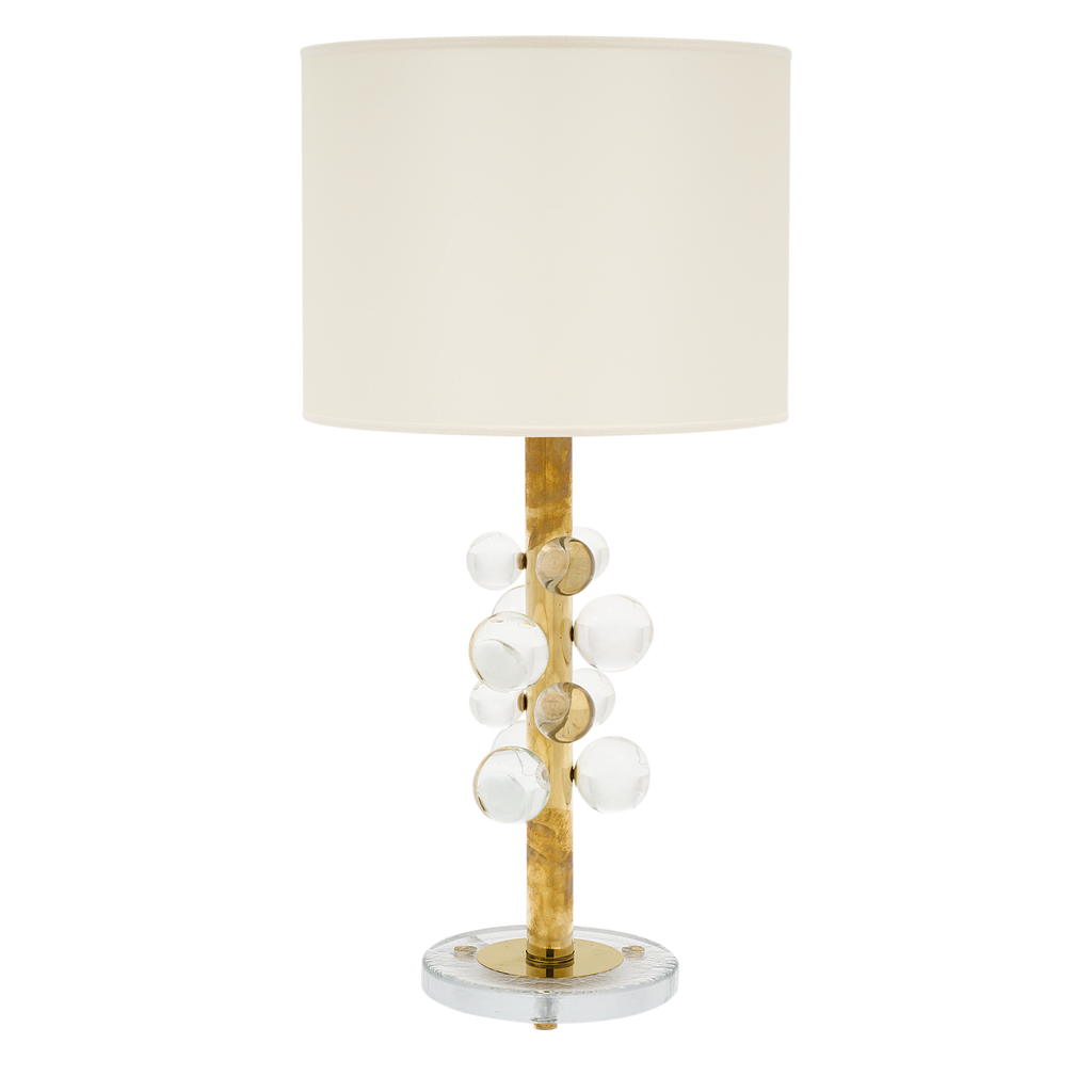 Murano Glass lamp, Italian, from the island of Murano. This hand-blown modernist lamp feature a cluster of clear glass spheres around a cylindrical brass stem. The base is a hand-blown glass base as well. It has been newly wired to fit US standards.