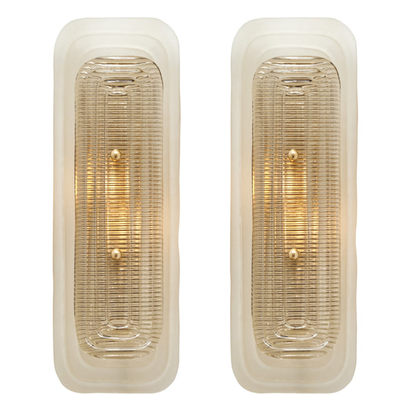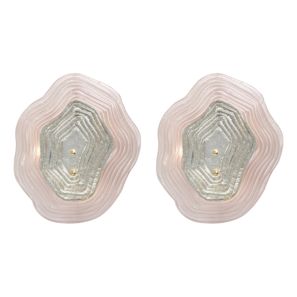 Pair of Murano sconces, from the island of Murano. These sconces feature a conic Murano smoked glass shade mounted on a solid polished brass structure adorned with a “pulegoso”glass sphere. They have been newly wired to fit US standards.
