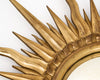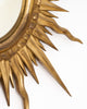Sunburst mirror, French, made of wood and finished in a 24 carat gold leafing, from the Art deco period. The convex mirror is adorned with a frieze and a rich combination of hand carved rays.