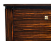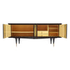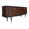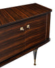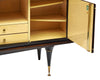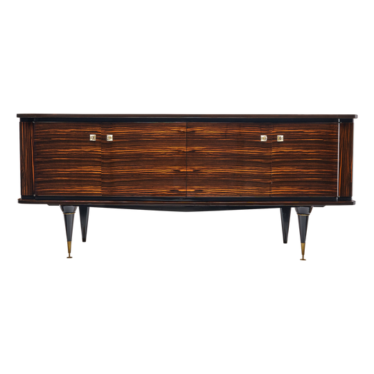 French buffet/sideboard made of Ebony of Macassar. The enfilade features gilded hardware, tapered legs and four doors that open up to an adjustable lemon wood interior shelves setup with drawers. This piece is in very nice vintage condition with only minor surface wear consistent with age and use. The photos accurately depict the condition.