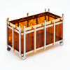Planter from the Modernist period in Italy. This piece has a chrome structure with original chrome caster wheels in working condition. Brown tortoiseshell colored plexiglass fits within the chrome structure. This piece is in very nice vintage condition with only minor surface wear consistent with age and use. The photos accurately depict the condition.