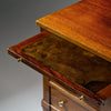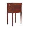 Side table in the Louis XVI period from France. This lovely table is made of solid wood construction, primarily elm wood. It has been finished with a lustrous French polish of museum quality. There are three dovetailed drawers below one pull-out leaf for functionality. The leaf and drawers all feature cast brass hardware. The table is supported by long tapered legs. It is in very nice vintage condition with only minor surface wear consistent with age and use. The photos accurately depict the condition.