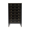 French “Semainier” in the Louis XVI style, the neoclassical cabinet features 7 dovetailed drawers (one for each day of the week, “semaine” means week in French). The Semainier was crafted in solid Mahogany, ebonized and finished with a lustrous Museum quality French polish, oak is the secondary wood. The cabinet is topped with an intact and original Carrara white marble slab. “Toupies” feet, fluted sides and gilt brass hardware and trims throughout. The piece is in very nice antique condition with only minor surface wear consistent with age and use. The photos accurately depict the condition.