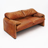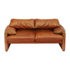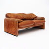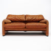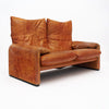 Love seat sofa from Italy made with the original Italian tan leather. This piece was designed as part of the Maralunga line by Vico Magistretti and crafted by Cassina. Originally designed in 1973, it won Italy’s Compasso D’Oro award for Industrial Design in 1979. We love the quality material and comfort of this piece. Both unique and highly functional, this sofa is made of fine leather that transforms into many comfortable and stable positions. Superb examples of this highly sought after designer's work and craftsmanship. It is in very nice vintage condition – the photos accurately depict the condition.