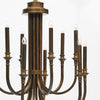 Chandelier from mid-century France made with a brass structure. This piece has twelve arms of varying heights and a beautiful original patina to the brass. It has been newly wired to fit US standards. It is in excellent vintage condition with only minor surface wear consistent with age and use. The photos accurately depict the condition.