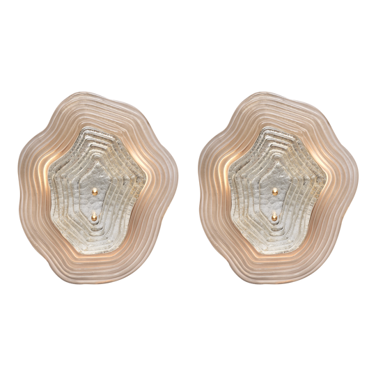 Pair of Murano sconces in smoked and silver glass. We loved the organic shape of the sconces and their dynamic design. This pair has been newly wired to fit US standards and is in very nice condition. The photos accurately depict the condition.