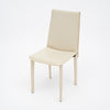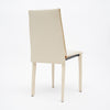 Set of four dining chairs from Italy in the modernist style. Each chair has a metal structure and is wrapped with white leather. The leather features the saddle stitching for a lovely detail. Fasem is a luxury leather furniture company based out of Tuscany in Northern Italy. They are guided by years of collaboration with Italian world renowned designers. Fasem has combined for many years, with brio, an impeccable craftsmanship and styling with the best quality of leather. The set is in excellent vintage condition – the photos accurately depict the condition.