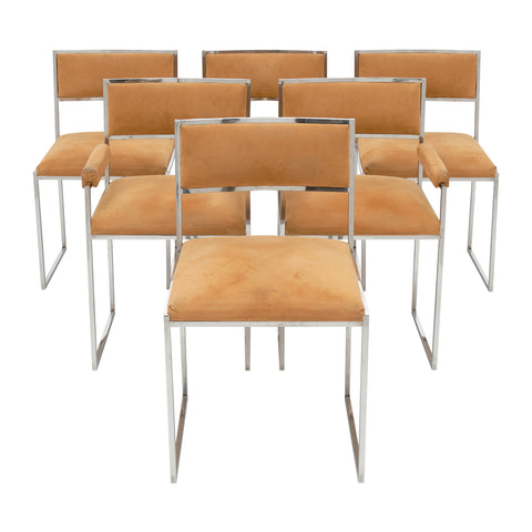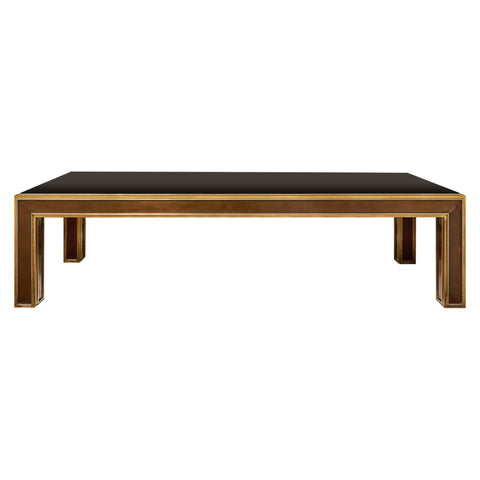 Dining table, Italian, made of brass with chrome details. The top is the original smoked glass. This solid, striking dining table is impressive in size. We love the two tone metal and the impact of this piece.